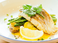 Kabeljauwhaasje met saffraanrisotto en een krokant parmezaankoekje