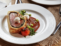 Mini wellington van ossenhaas met duxelles en rode wijnsaus