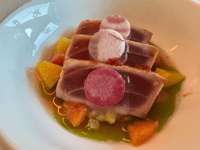 Tonijn Met Yuzu- en Bloedsinaasappel Saus - Lavendelgel - Seizoensgebonden Radijs