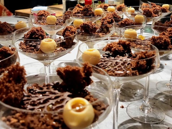 Cornetto: Kastanje crème - Sorbetijs van pompoen & Ras el hanout - Crumble