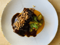 48 Hours Short Ribs - Sous Vide Beef ribs in a sticky soy glaze, kobucha puree, japanese pickles