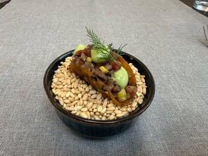Crispy nori cone - yellowfin tuna and avocado tartare, wasabi