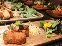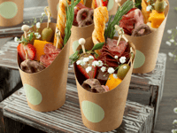 Vanuit onze charcuteriebar stellen gasten zelf hun luxe borrelplank samen, vers van onze bar vol premium charcuterie, kazen en bites.