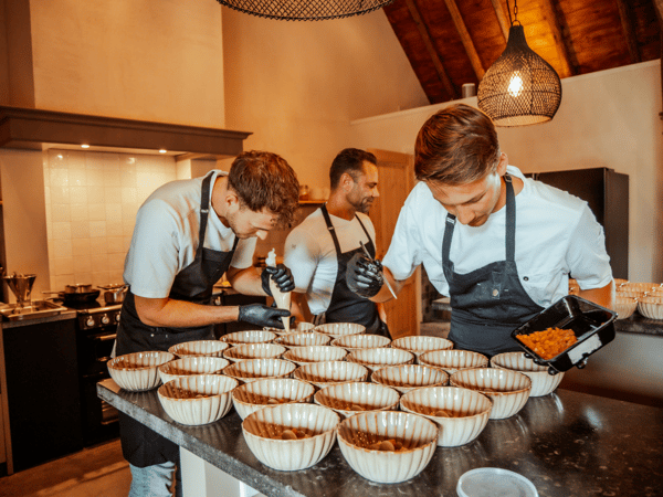 Van intiem diner tot zakelijk event Wij vertalen uw wensen naar de perfecte culinaire beleving! CHEF IN HUIS Onvergetelijke culinaire momenten Welkom bij Chef in Huis, uw partner voor onvergetelijke culinaire momenten! Van een intiem privé diner in uw eigen keuken tot een groots zakelijk event op een unieke locatie: wij vertalen uw wensen naar een culinaire beleving van topkwaliteit. Met onze gepassioneerde chefs en ervaren eventmanagers zorgen we voor hoogwaardige gerechten, perfecte service en een organisatie die tot in de puntjes klopt. Maak uw volgende moment bijzonder! BISTRO IN HUIS Bij Bistro in Huis brengen we de klassieke bistro rechtstreeks naar uw tafel, maar dan met een unieke twist. Onze chefs bereiden met zorg en vakmanschap gerechten in bistro-stijl, die kant-en-klaar bij u thuis of op een locatie van uw keuze worden geleverd. Of het nu gaat om een intiem diner, een feestelijke bijeenkomst of een speciale gelegenheid, wij zorgen voor een super ervaring die perfect aansluit bij uw wensen.