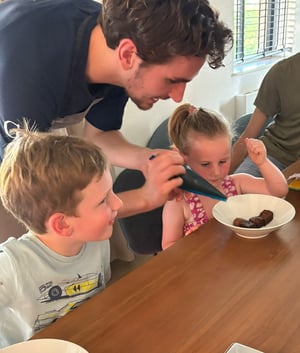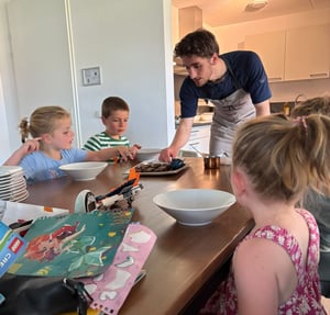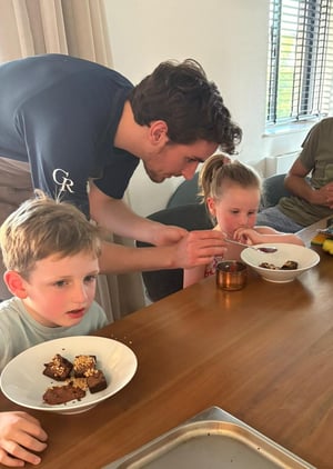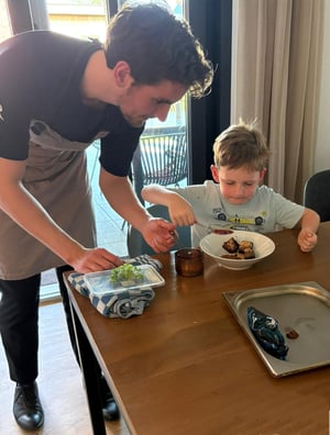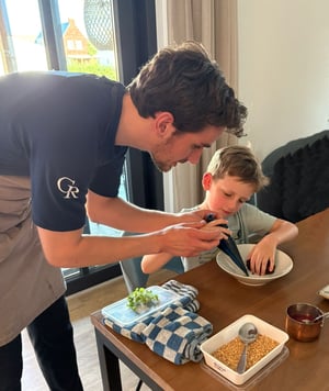 De avond met Simon van Grands Reves als chef was heel erg leuk en bijzonder! Wie wil dat nou niet een chef in huis..en zeker als die chef Simon van Grande Reves is. Want wat kan deze jonge man lekker koken. Lekkere toegankelijke gerechten met een creatieve twist en ook nog eens mooi opgemaakt! Simon was daarnaast ook gastvrij en wist zijn weg in de keuken gemakkelijk te vinden. Daarnaast laat hij de keuken ook nog eens schoon achter. We zijn erg tevreden en blij met dit concept. Uiteten in je eigen huis, heel gemakkelijk wanneer je een jonge baby hebt en toch een bijzondere avond wil. We zullen zeker nog eens gebruikmaken van een chefkok in huis!